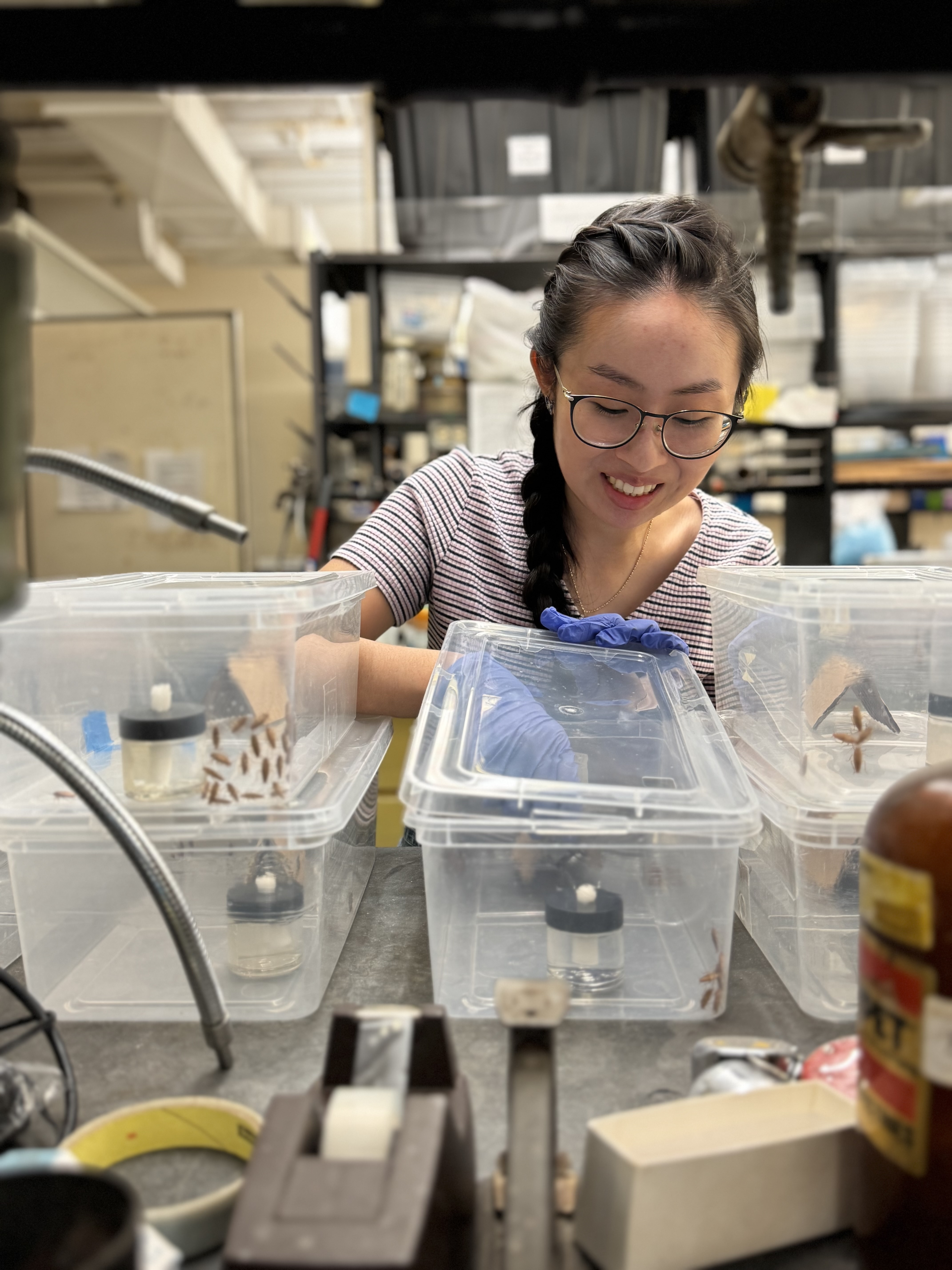 Now as a doctoral student, her research focuses on how German cockroaches behave when exposed to gel baits, which are the most commonly used treatments against them. She is also active in outreach, working to shift public perceptions of cockroaches, break the negative stigma around them, and raise awareness of their role in human environments.