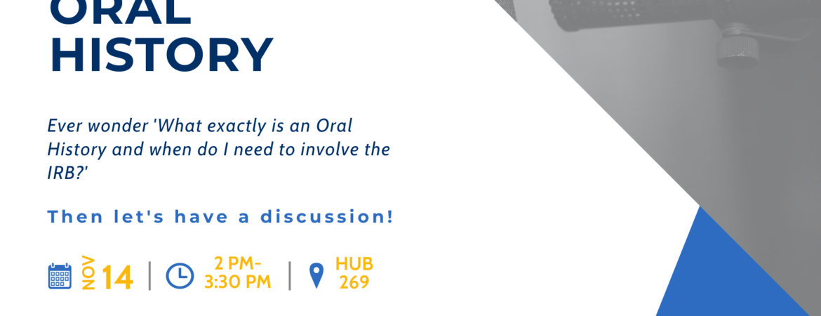 Ever wonder 'What exactly is an Oral History and when do I need to involve the IRB?'…then let’s have a discussion!