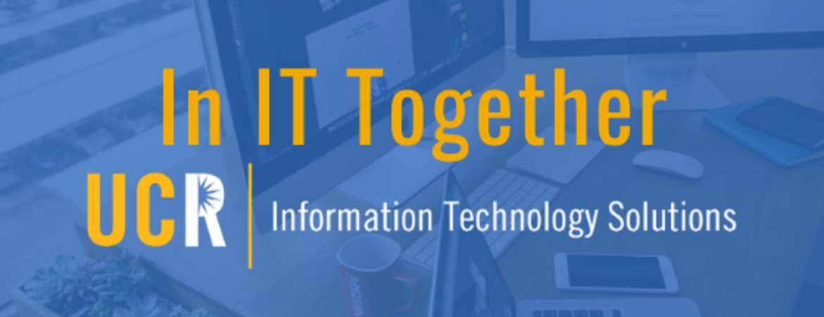 It is my pleasure as Interim CIO to introduce the inaugural edition of the ITS newsletter, In IT Together. Robust and innovative campus technology services are key to enabling your success here at UCR. Through this quarterly newsletter, we aim to keep you up to date on all of the important, industry-forward offerings of Information Technology Solutions by providing valuable information about current technology initiatives, tools, and resources that support students, faculty, and staff.