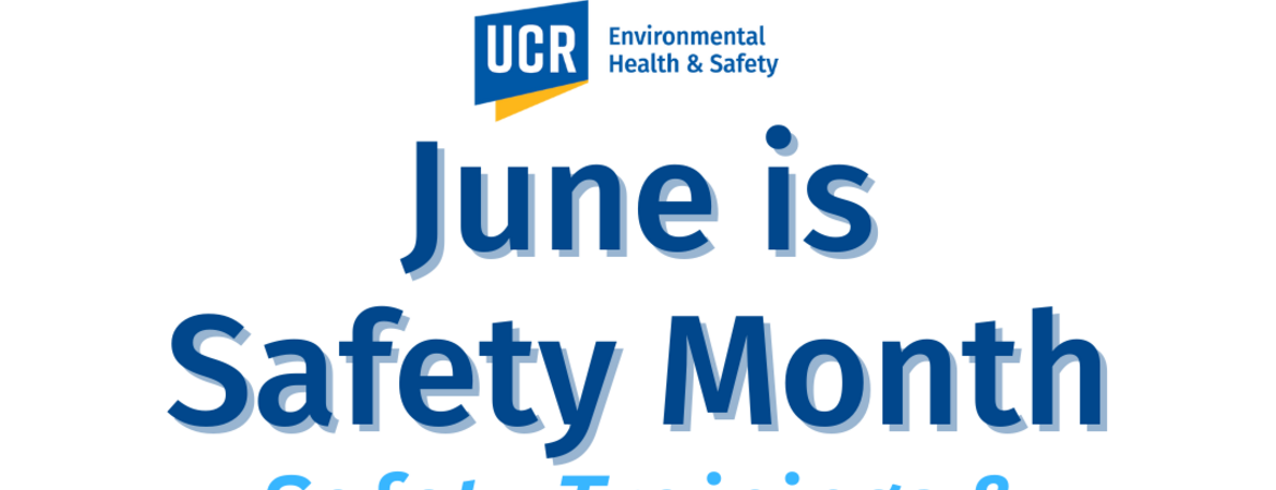 June is Safety Month at UCR! Join us all month for a variety of safety trainings, webinars and events! Our goal is to empower and educate the campus community with valuable knowledge and skills.