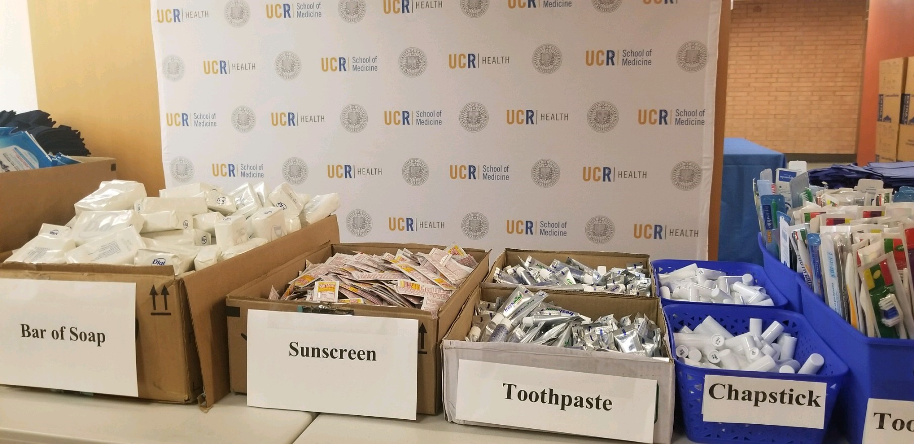 Faculty, students, and staff in the UCR School of Medicine distributed care packages and hygiene kits on Dec. 19, 2018, to more than 100 people in severe need in the City of Riverside. The kits, assembled earlier that month by more than 40 faculty, students, and staff, included sweatshirts, water bottles, warm socks, and hygiene kits. The effort was part of the UCR Health Street Medicine program, which had already met with success in nearby Palm Springs.
