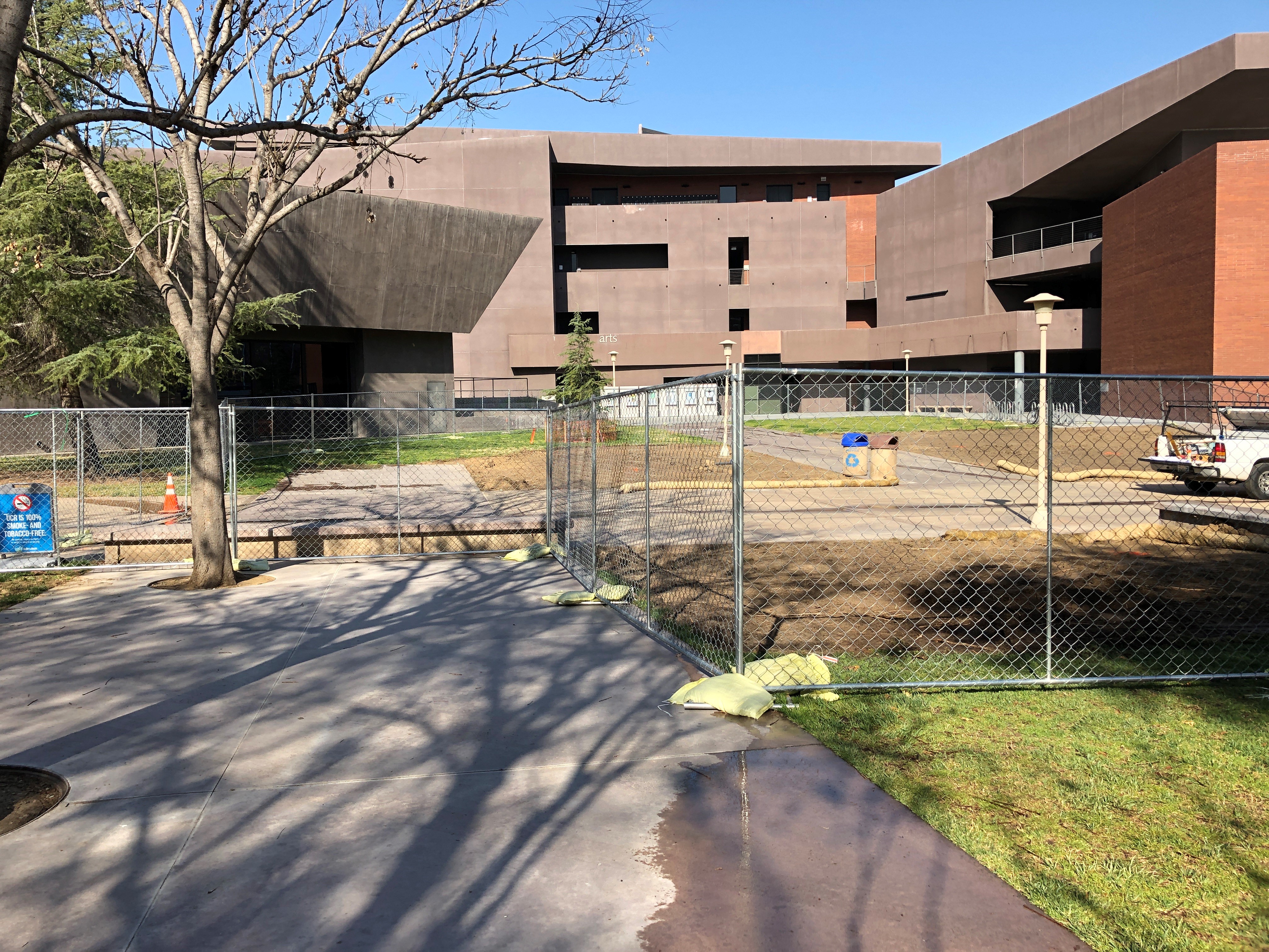 Construction of an outdoor art sculpture in front of the Arts Building is now underway with crews fencing off the walkway and beginning excavation work.