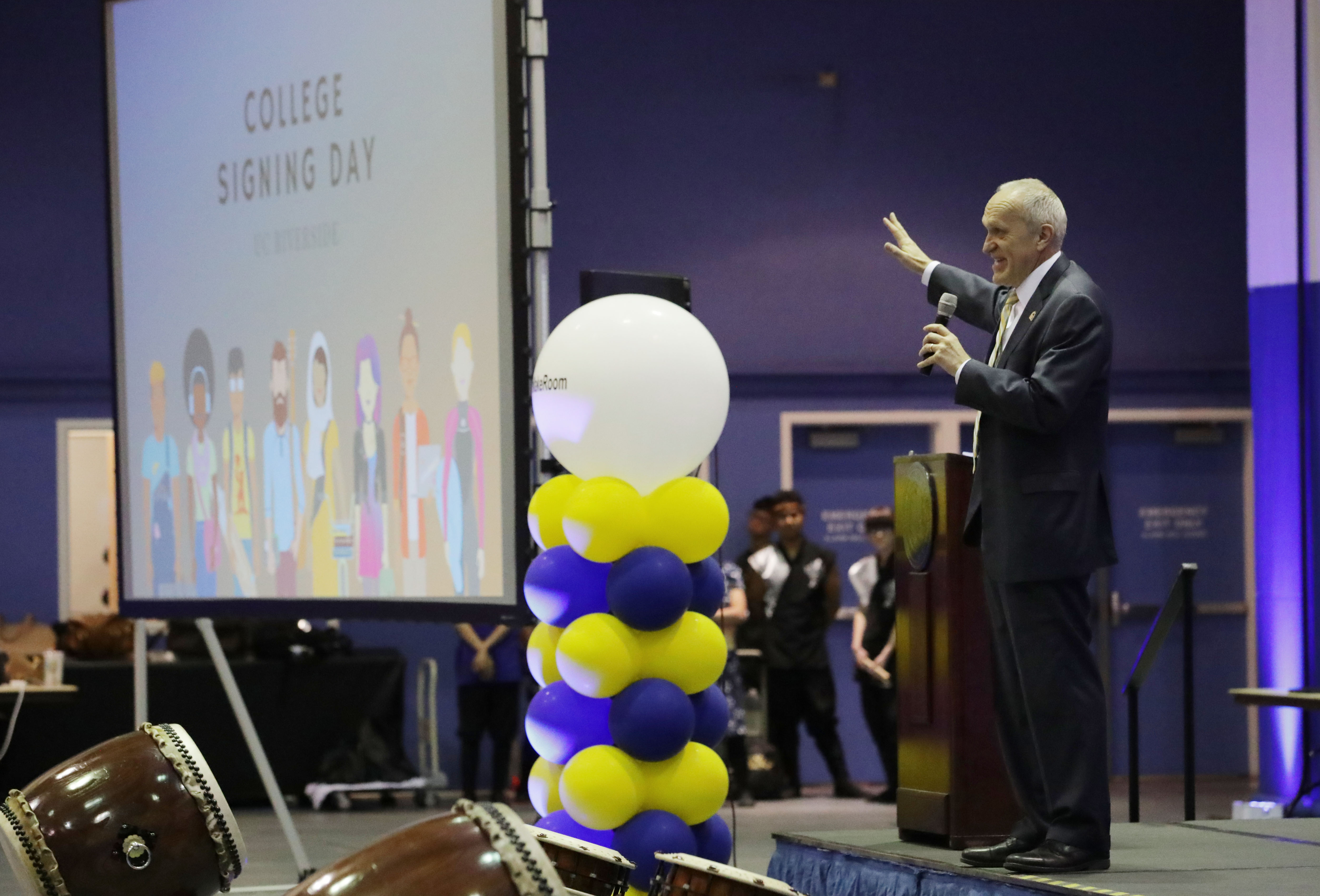 About 860 college-bound high school students attended College Signing Day at UC Riverside on Wednesday, May 1, as part of a simultaneous celebration across all nine University of California undergraduate campuses.