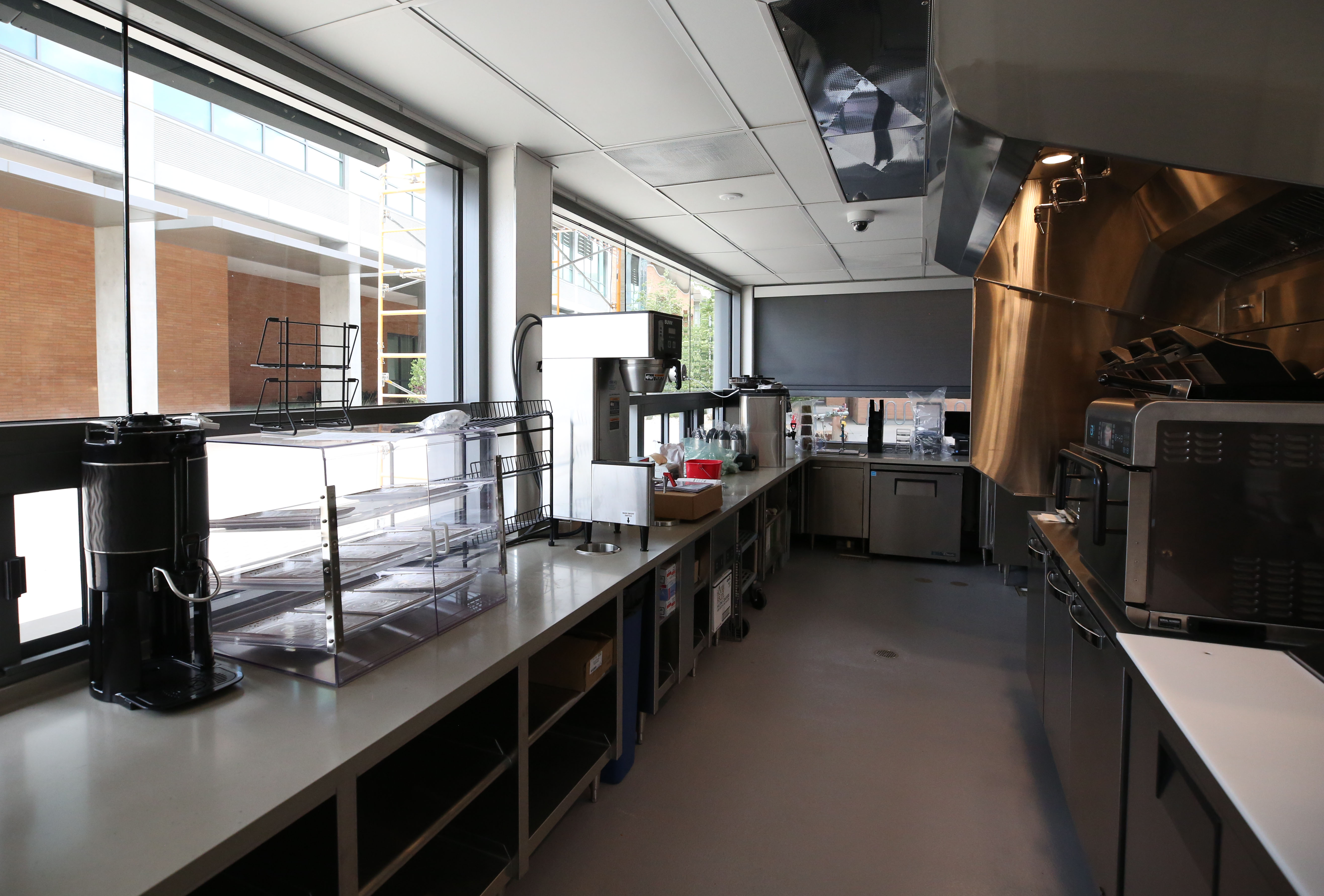 The $1.6 million building, which began construction last summer, is equipped with three panini presses that take one-minute, 18-seconds to make each panini, a rapid cook-over oven, a double-door-fridge, a single-door freezer, and an espresso machine.
