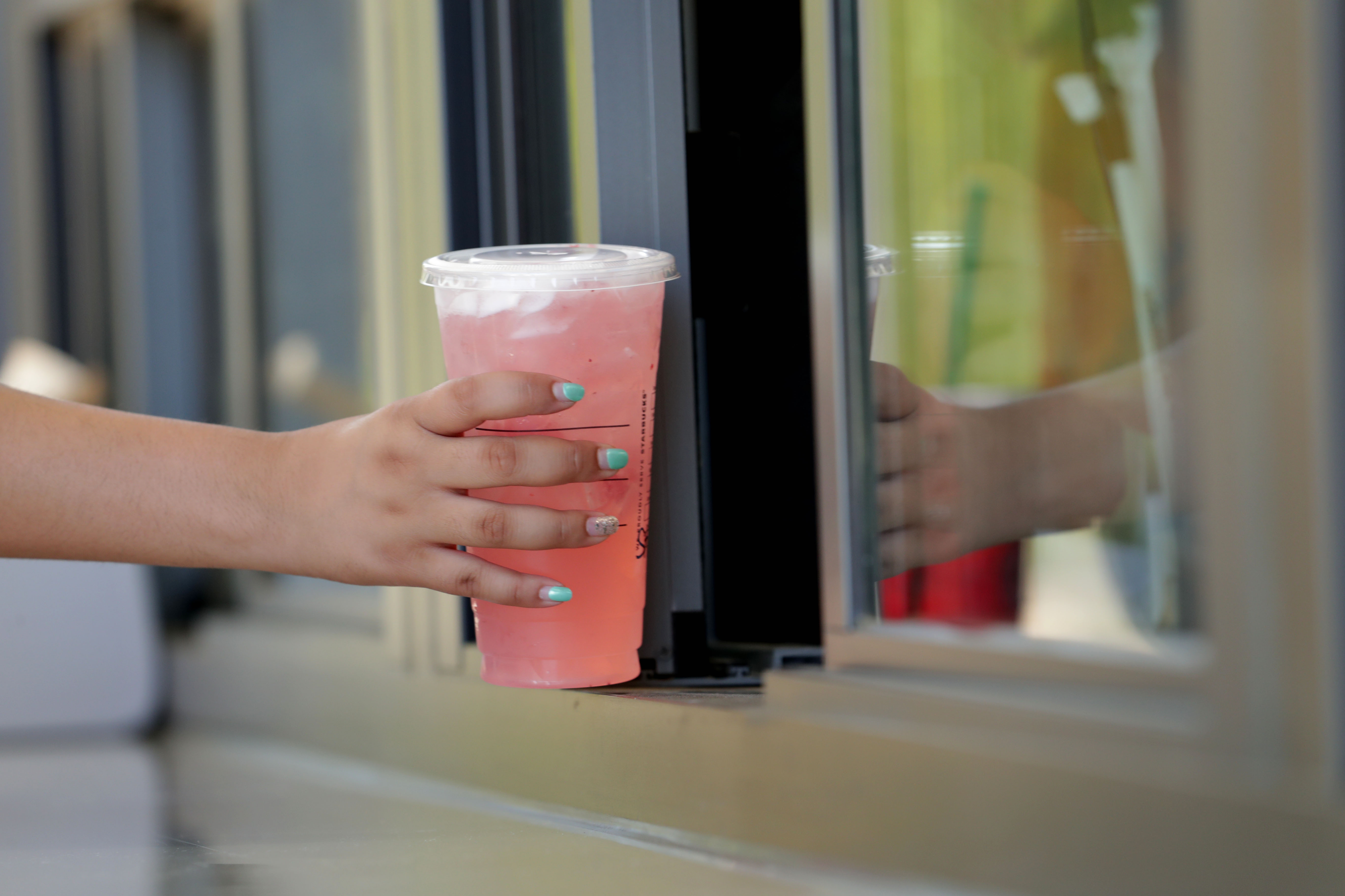 Customers can order at two outdoor windows, with a digital display menu above, and pick up their food at a different window. Seating is outdoors with five tables that can seat up to 20 people.