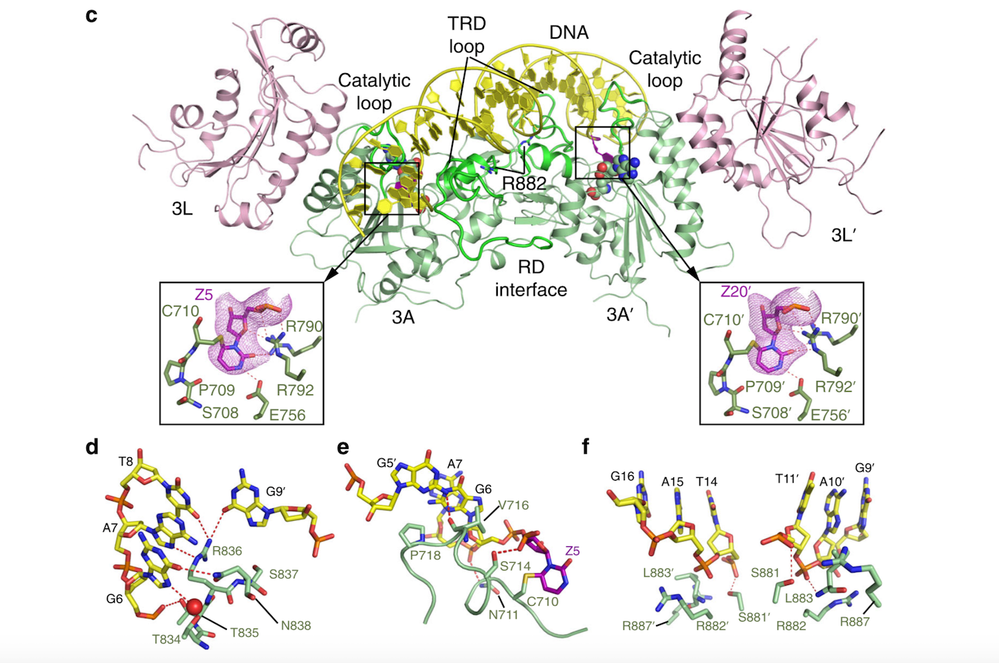 DNA methylation is a process involving the transfer of methyl groups to the DNA molecule, which critically influences gene expression, genomic stability and cell differentiation. Mutations of DNMT3A have been linked to a variety of diseases, such as acute myeloid leukemia, or AML, and overgrowth syndrome.