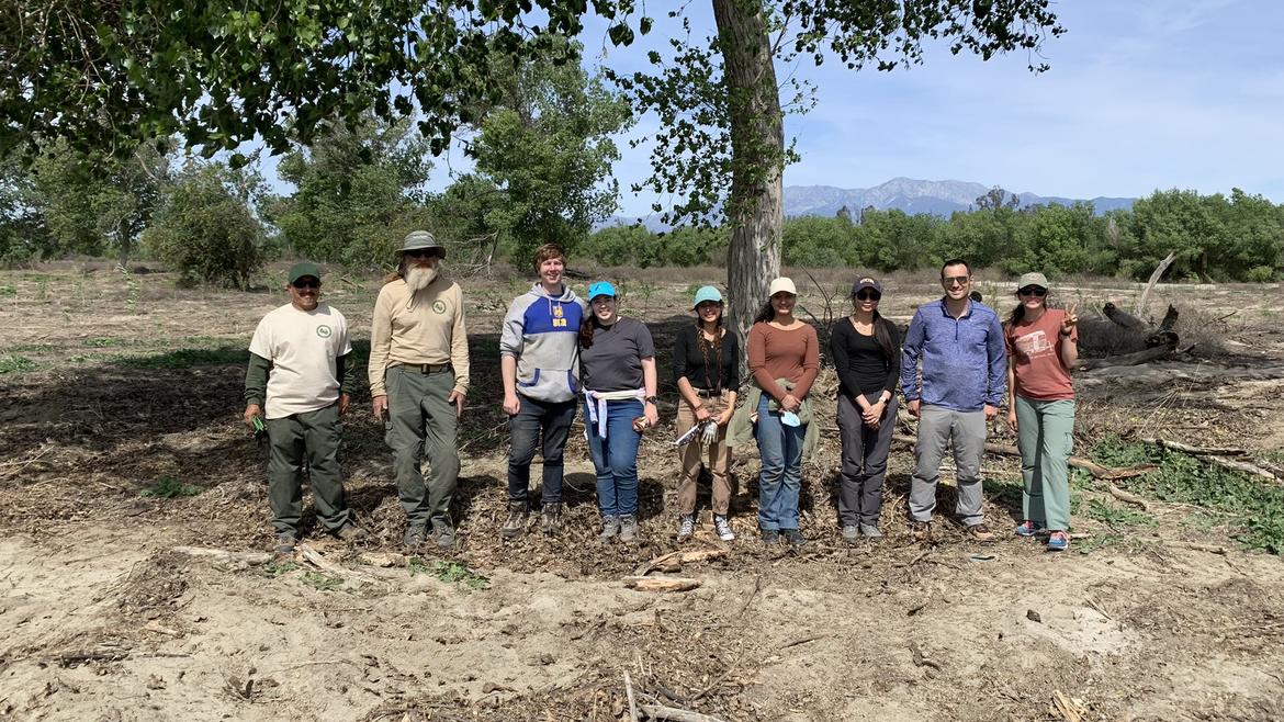 Seven UC Riverside student volunteers from the College of Science and Natural Sciences, or CNAS, joined wildlife experts from the Riverside County Parks (or RivCoParks) in planting 240 native riparian trees at Hidden Valley Wildlife Area in Jurupa Valley, California.