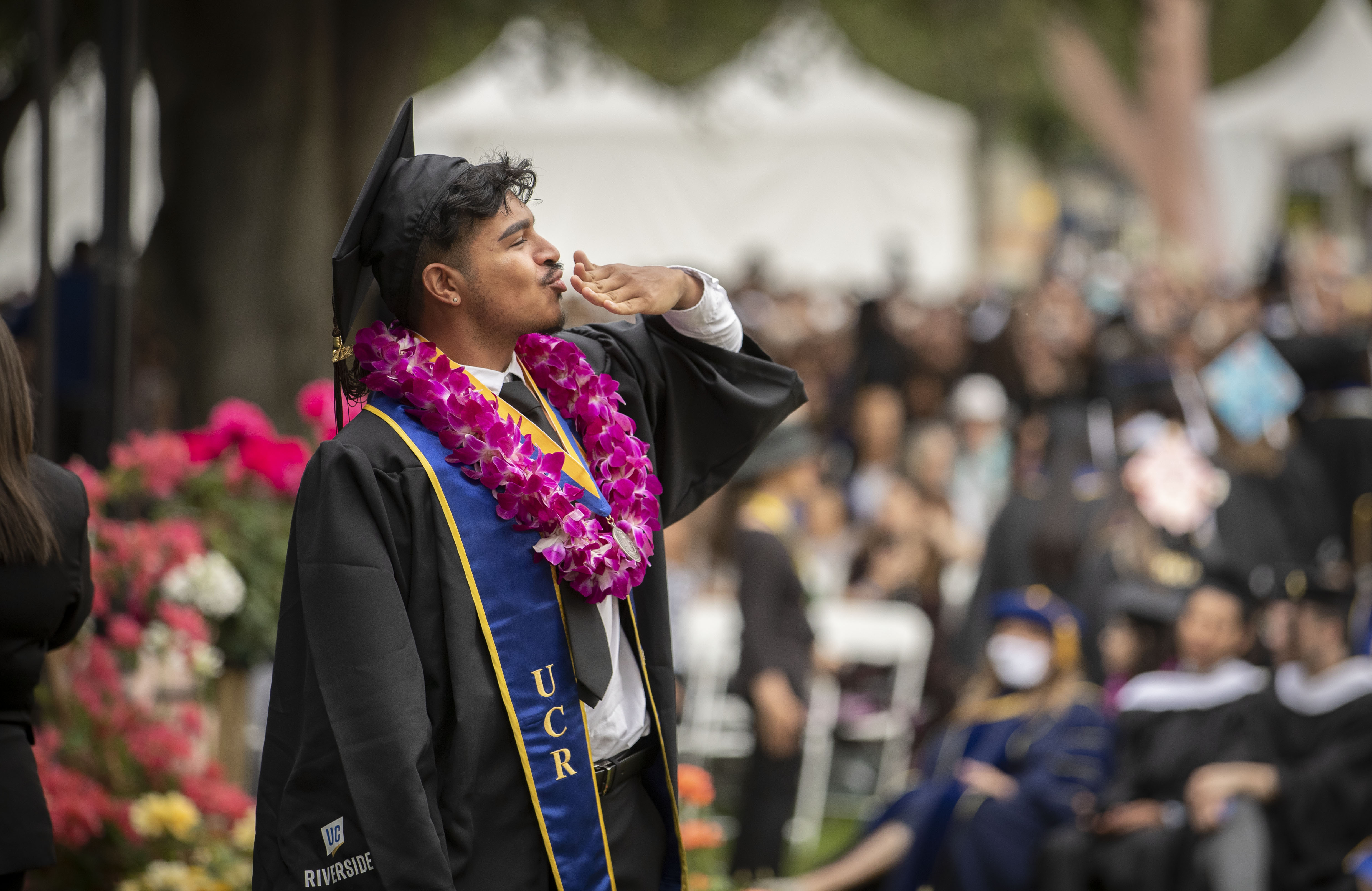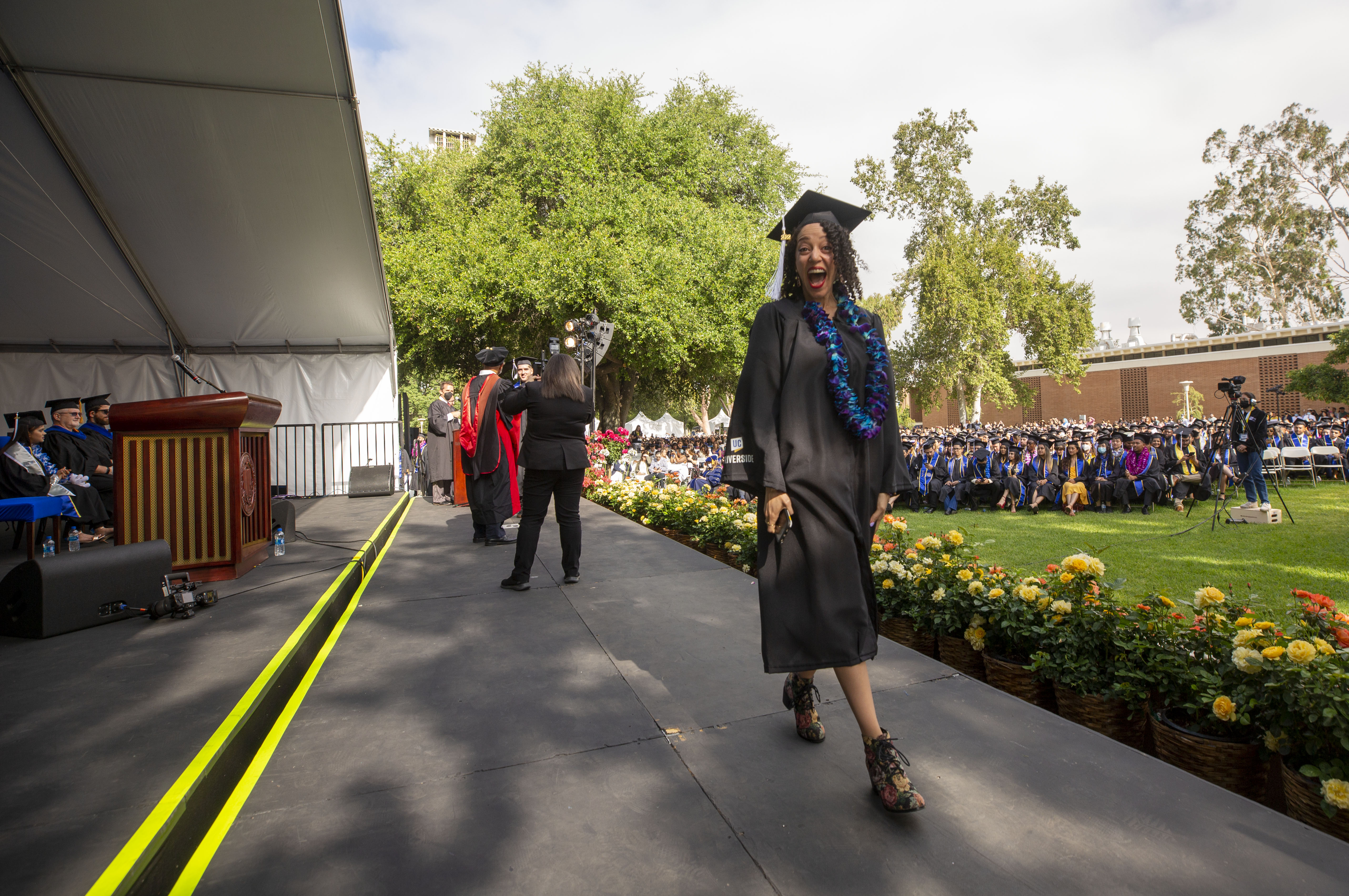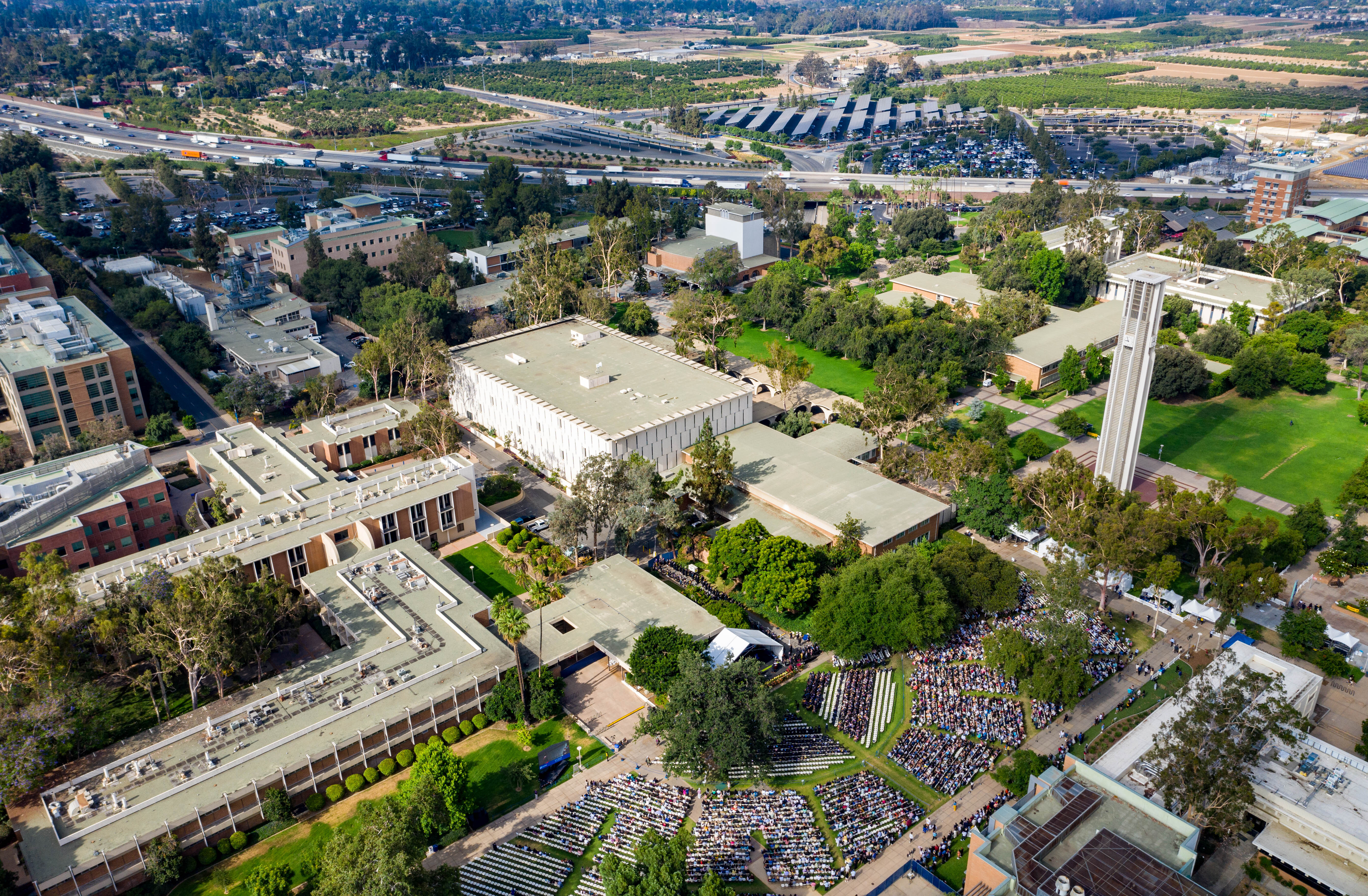 The ceremonies began Friday, June 3, and concluded Monday, June 13. A total of 7,272 students were eligible to graduate. That included 1,117 students in the School of Business, 420 in the School of Education, 1,006 in the Marlan and Rosemary Bourns College of Engineering, 2,808 in the College of Humanities, Arts, and Social Sciences, 1,682 in the College of Natural and Agricultural Sciences, 81 in the School of Medicine and 158 in the School of Public Policy.