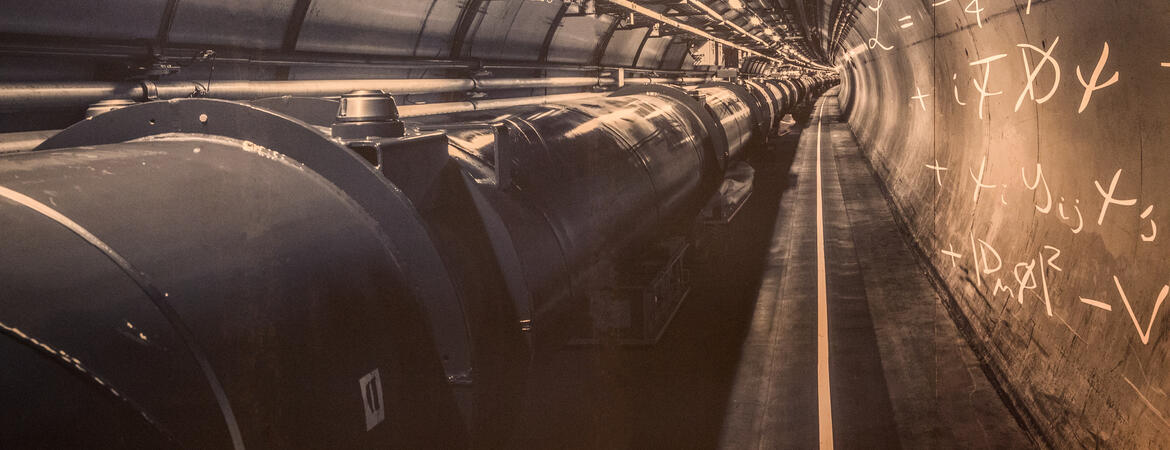 The LHC, a circular tunnel with a circumference of 17 miles, smashes particles by firing two beams of them traveling in opposite directions in the tunnel. After several rounds, the particles approach the speed of light and collide head-on, their debris offering physicists an opportunity to study the quantum world.