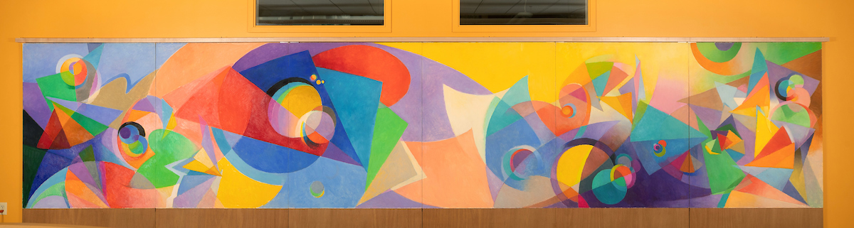 Lily Allen, a fourth-year graduate student who is pursuing a doctorate in art history with a focus on American artists, wrote the explanatory text posted next to the mural. Macdonald-Wright is one of the artists featured in her dissertation.