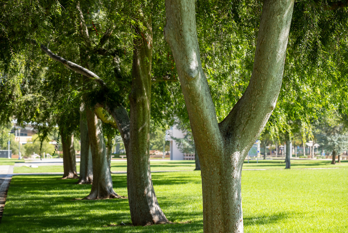 The UC Riverside campus has all sorts of trees, from mature oaks that date to the 1950s to rare varieties such as a single monkey puzzle tree near Olmsted Hall.