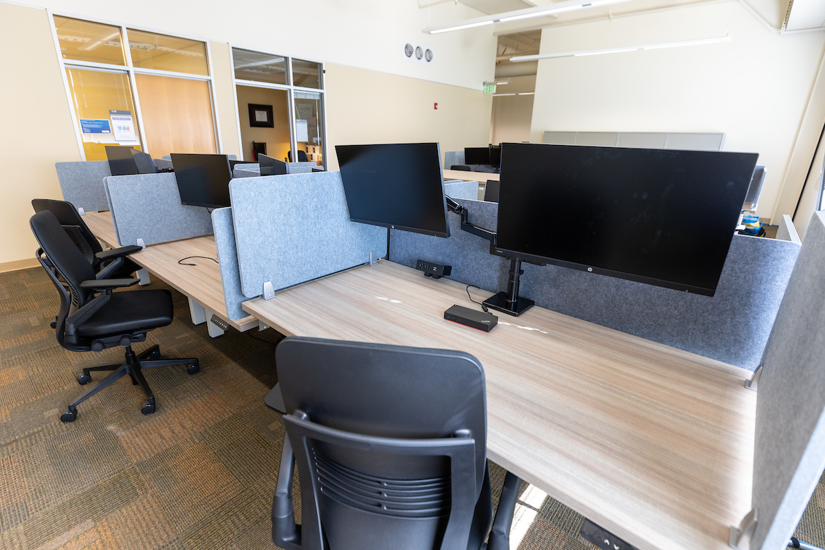 The post-pandemic era has introduced new workplace dynamics, said campus space manager Sharyl Murdock. Many employees no longer come into the office each day and their space is empty the rest of the week, hence the need for “hotel” — i.e., part-time, shared — accommodations.