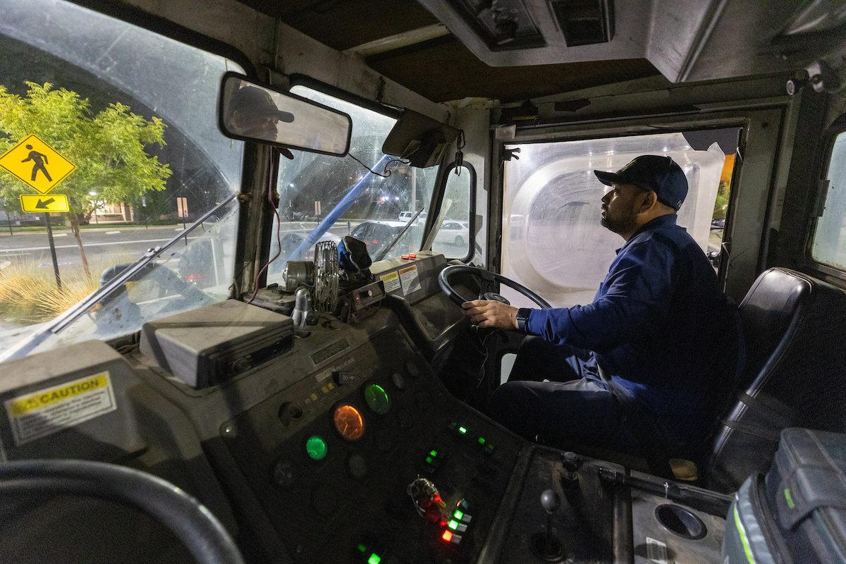 Salinas, who has been with UCR since 2017, began working as a street sweeper operator in 2018. He likes the shift because he can spend more time with his daughter during the daytime.