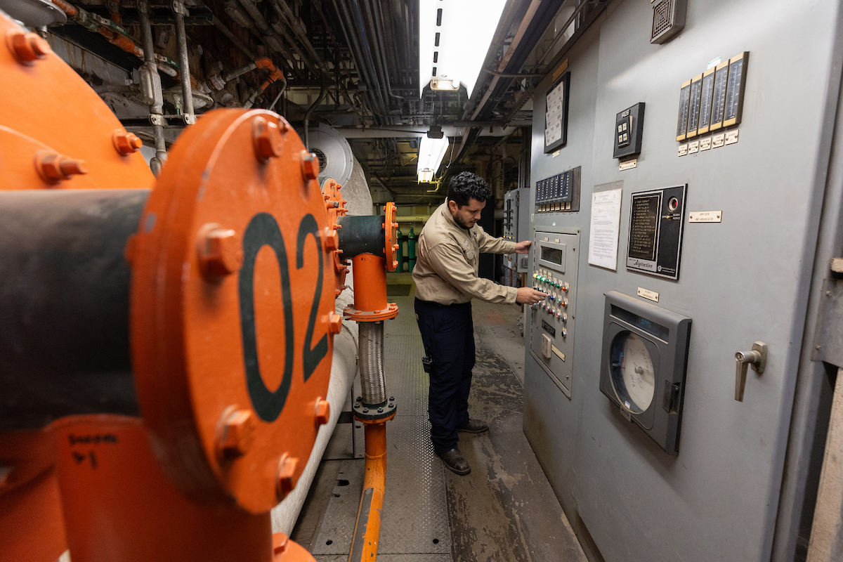 The Central Plant is one of the facilities that is running 24 hours a day, seven days a week with two operators at all times responsible for monitoring the four steam boilers and eight chillers that connect to several core campus buildings. The plant provides steam, compressed air, and vacuum to those buildings.