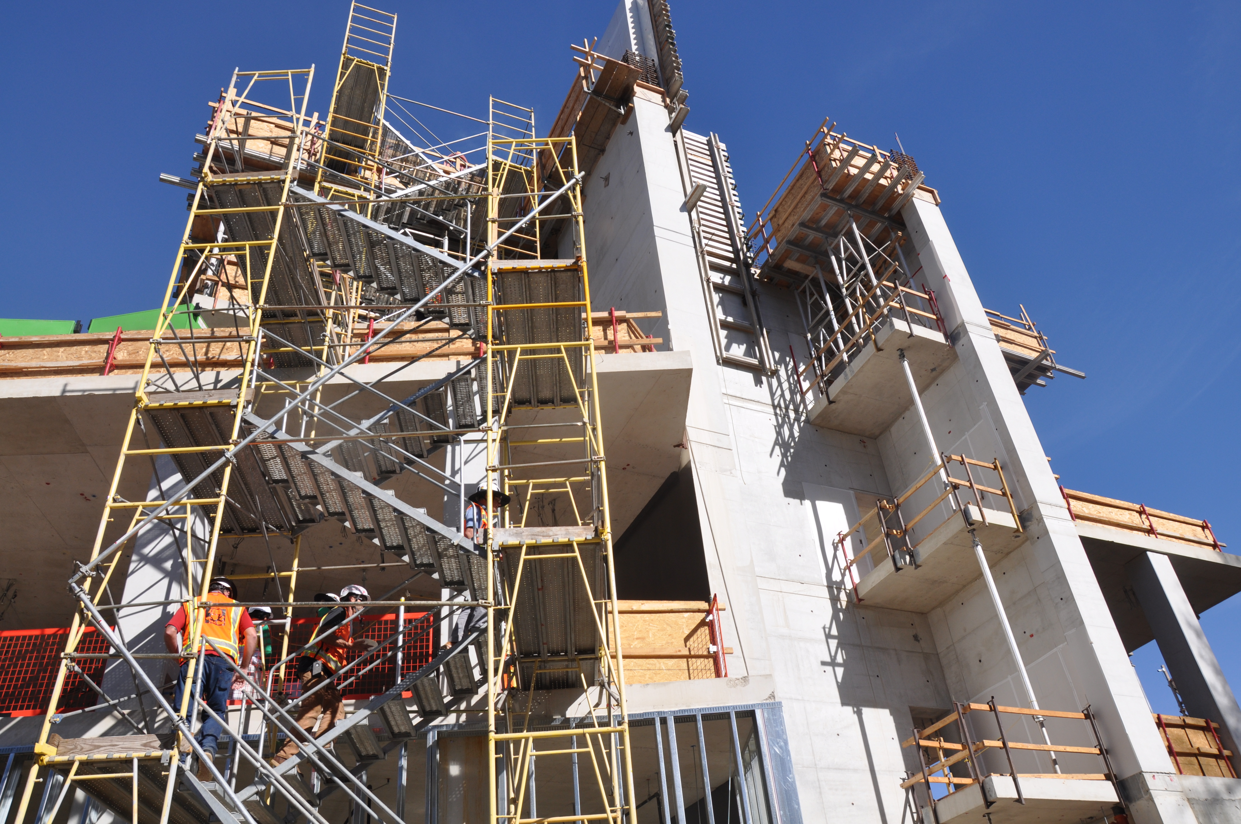 For the last several months, carpenters, iron workers, and other construction crew members created the concrete and steel frame of the building. Those crews wrapped up their work Dec. 18 and a new group of tradespeople began working on the project.
