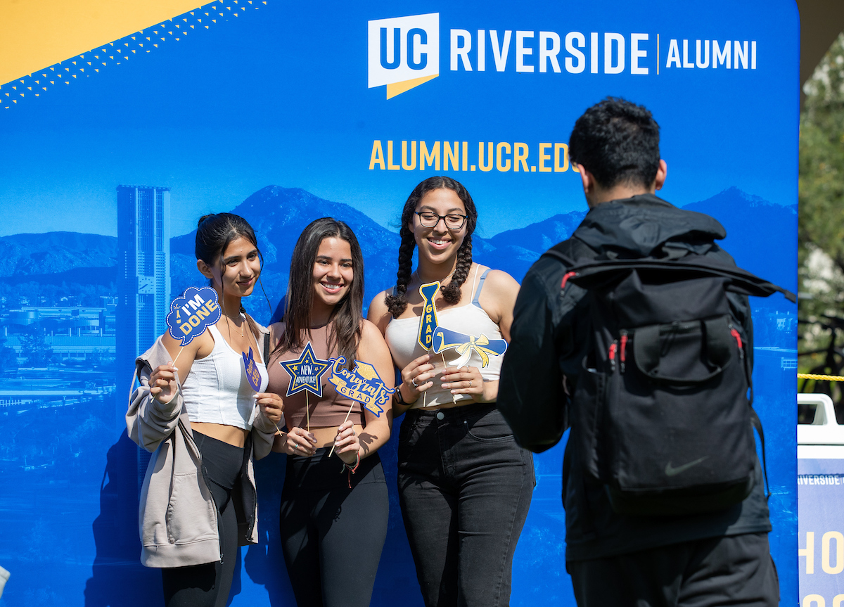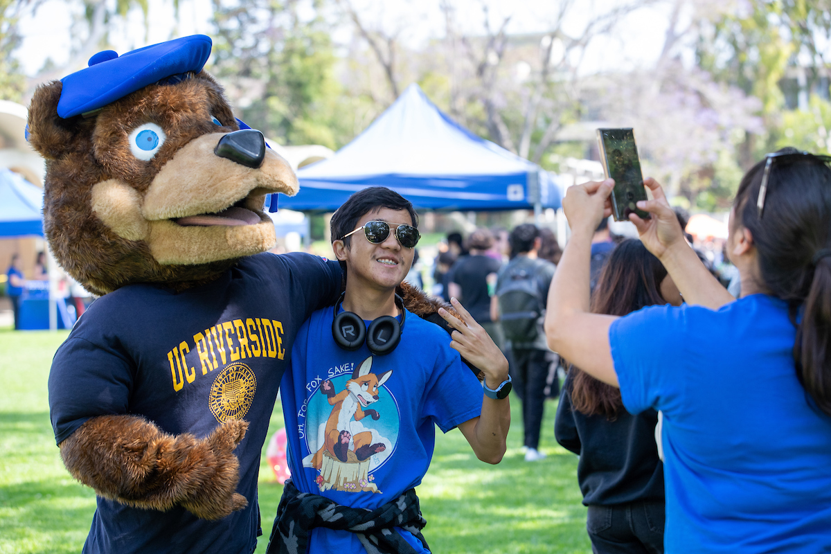 Many students took the opportunity to take photos with friends in front of campus landmarks such as the UCR sign and the bell tower.