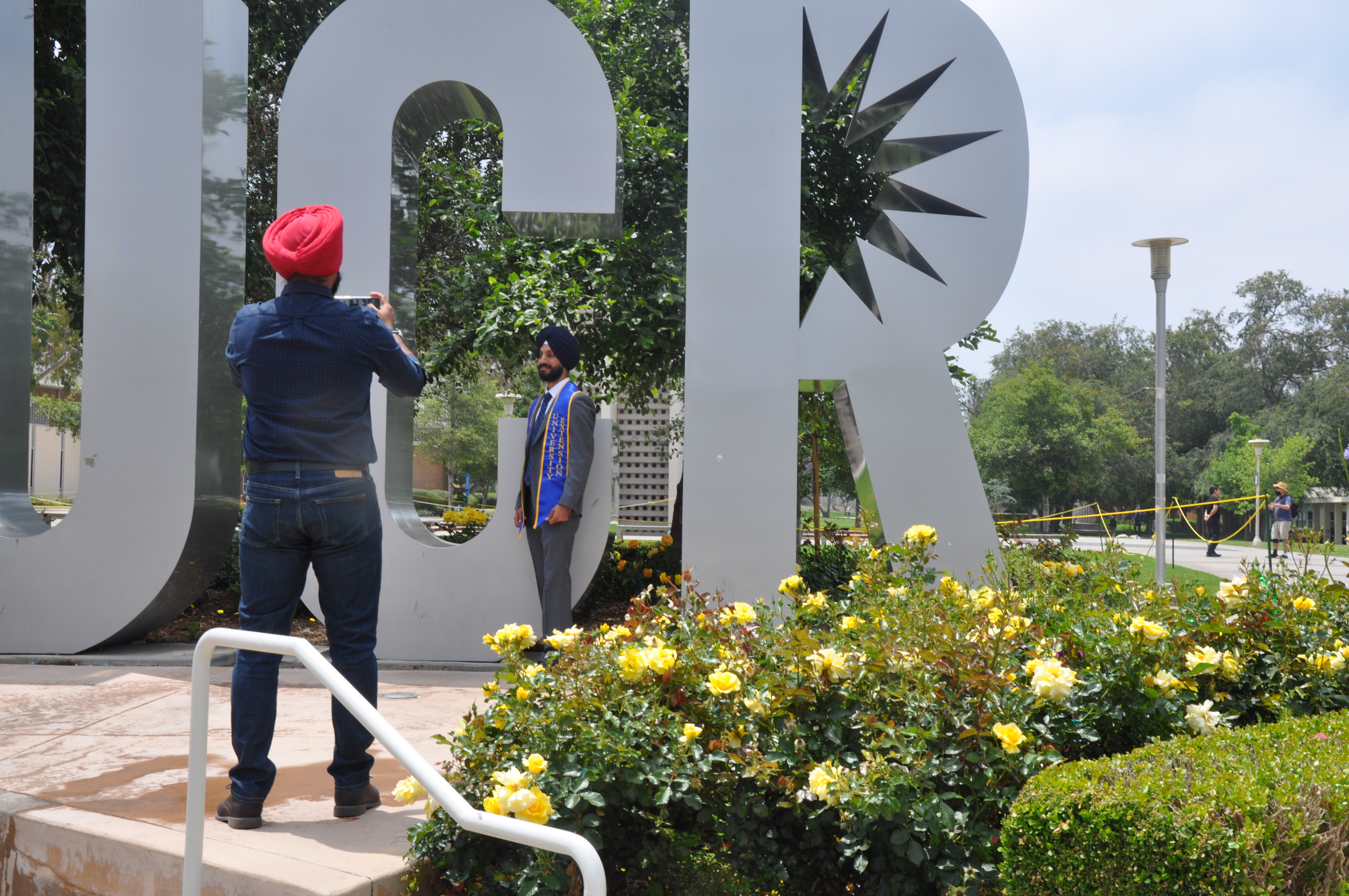 Yellow marigolds and blue lobelias were planted at sites that are popular for graduation photos like the UCR sign at the HUB Plaza and a planter bed near University Avenue and West Campus Drive.