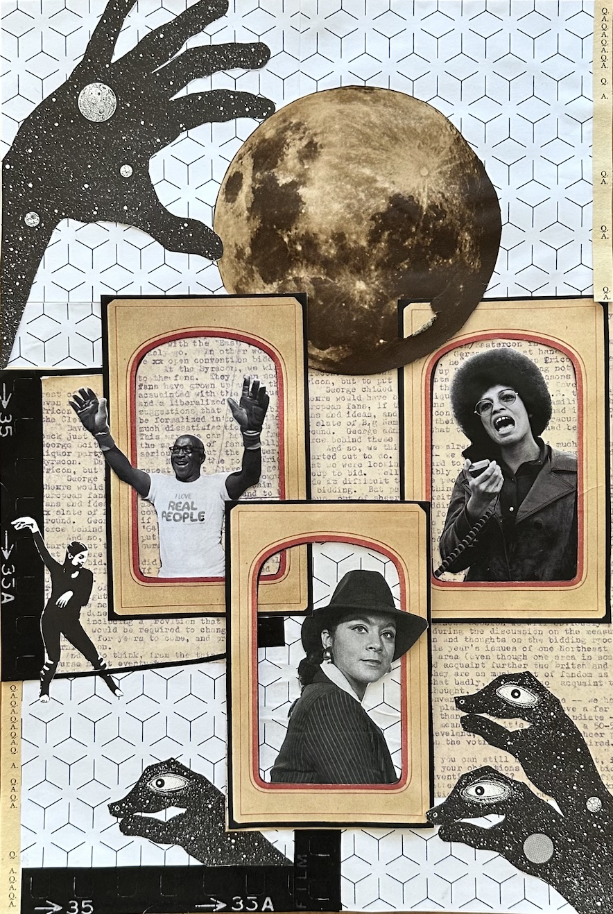 Annika Speer, a professor in the Department of Theater, Film, and Digital Production, also touches on elements of speculative fiction in a photo collage resembling a movie poster that includes civil rights activist Angela Davis.
