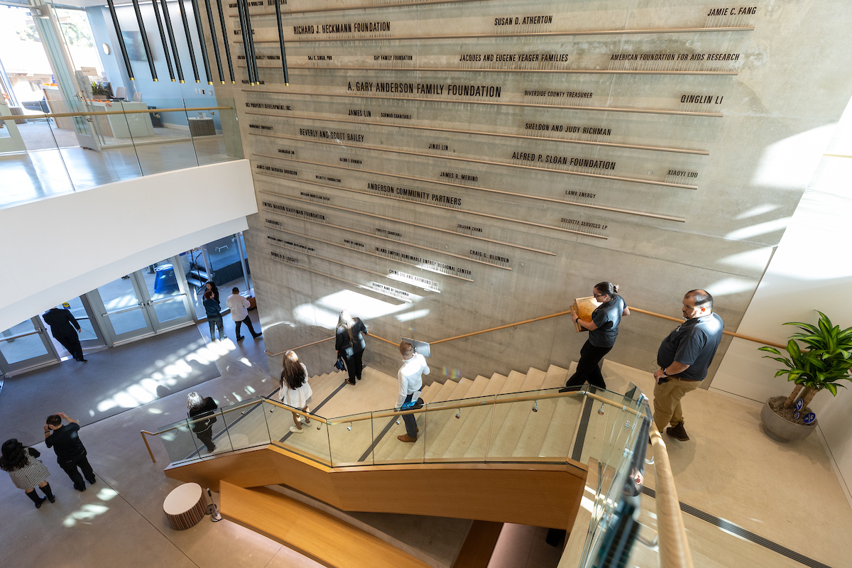 Chancellor Kim A. Wilcox described how Anderson Hall was at that time surrounded by citrus trees and built on a hillside to provide a view of the then-nascent downtown Riverside. The new building also provides expansive views of the campus and downtown Riverside and, like the old agricultural building, will build bridges between the campus and the community, Wilcox said.