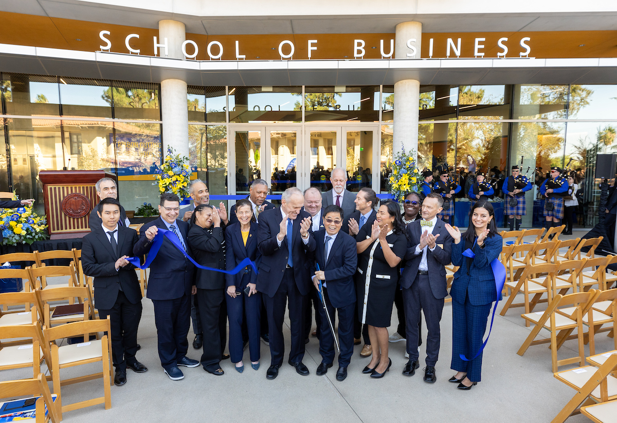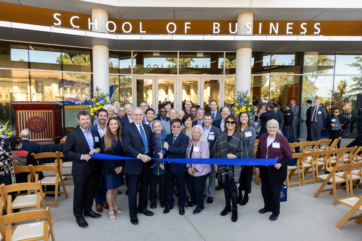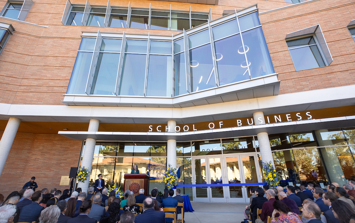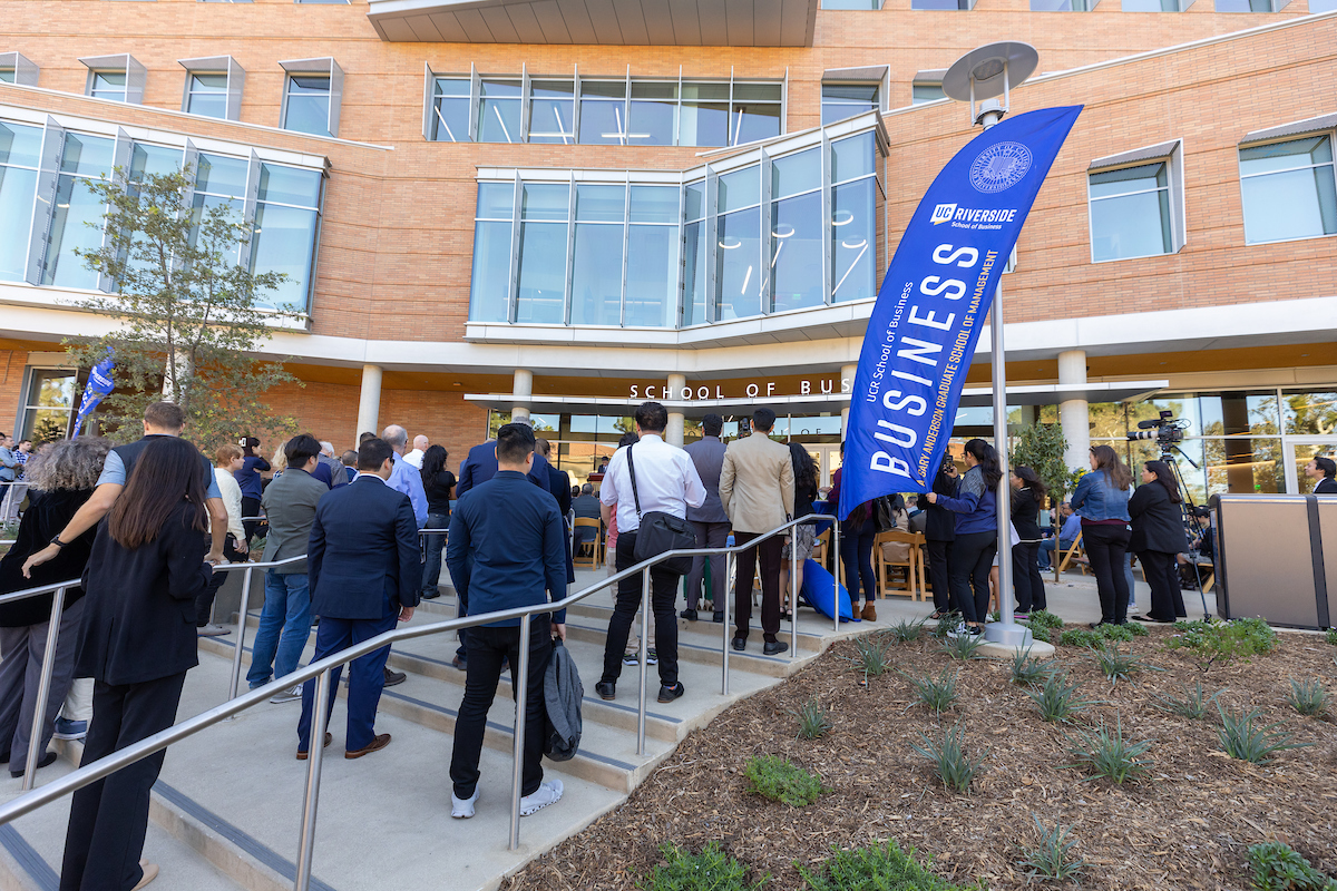 UC Riverside celebrated the start of a new chapter for the School of Business with the dedication of its new four-story instructional and administrative building at a ribbon-cutting ceremony Friday, Oct. 18.