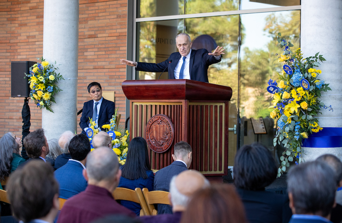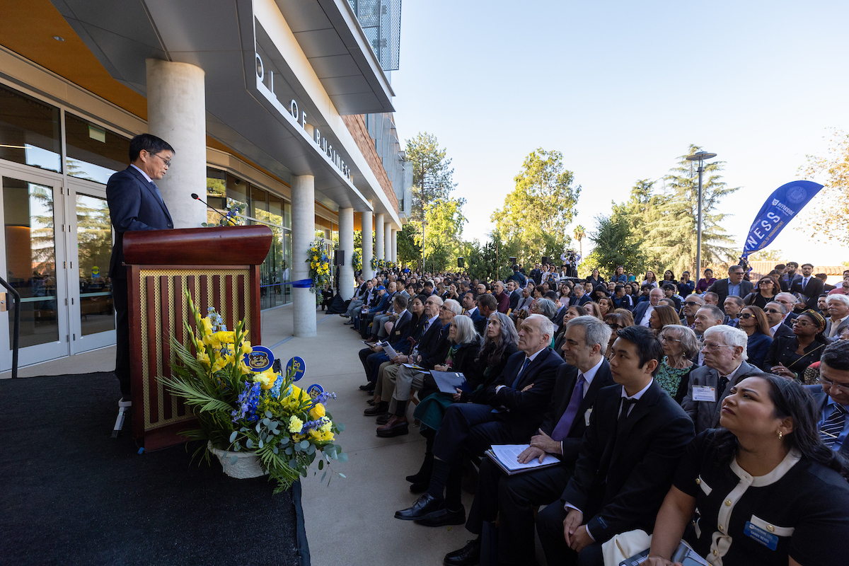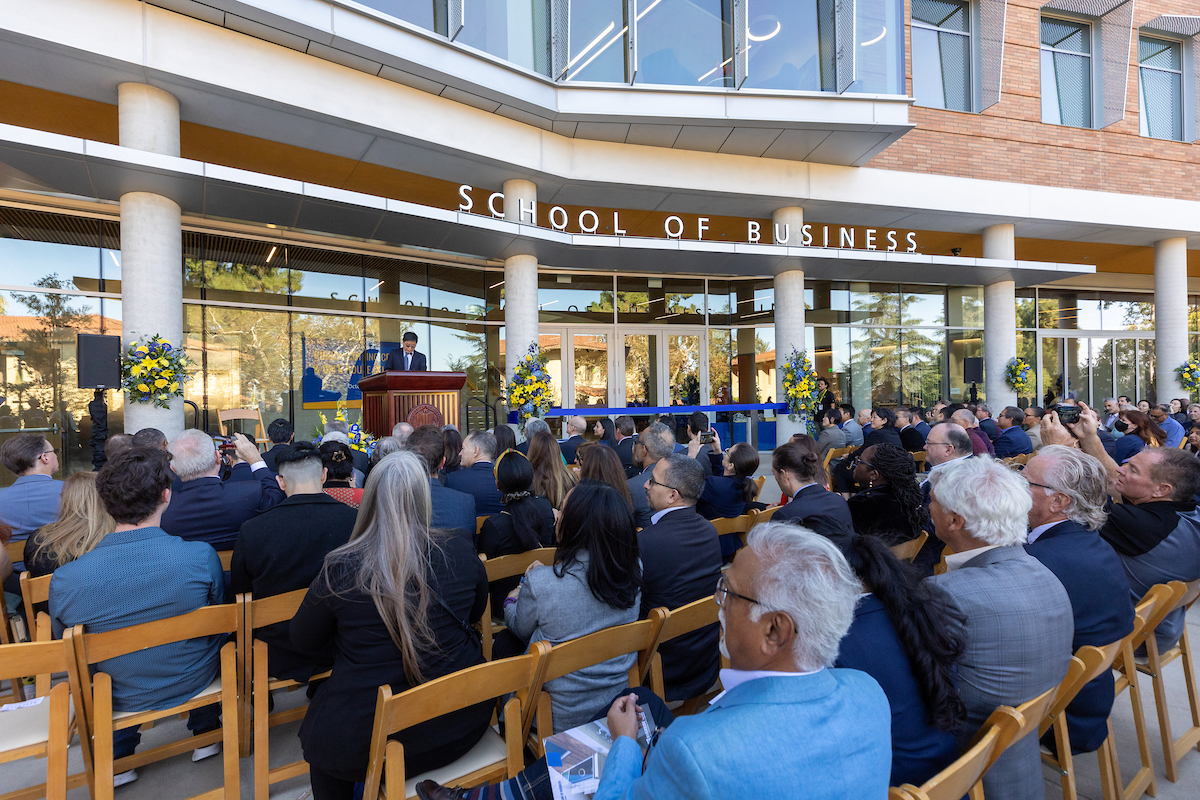 UC Riverside celebrated the start of a new chapter for the School of Business with the dedication of its new four-story instructional and administrative building at a ribbon-cutting ceremony Friday, Oct. 18.