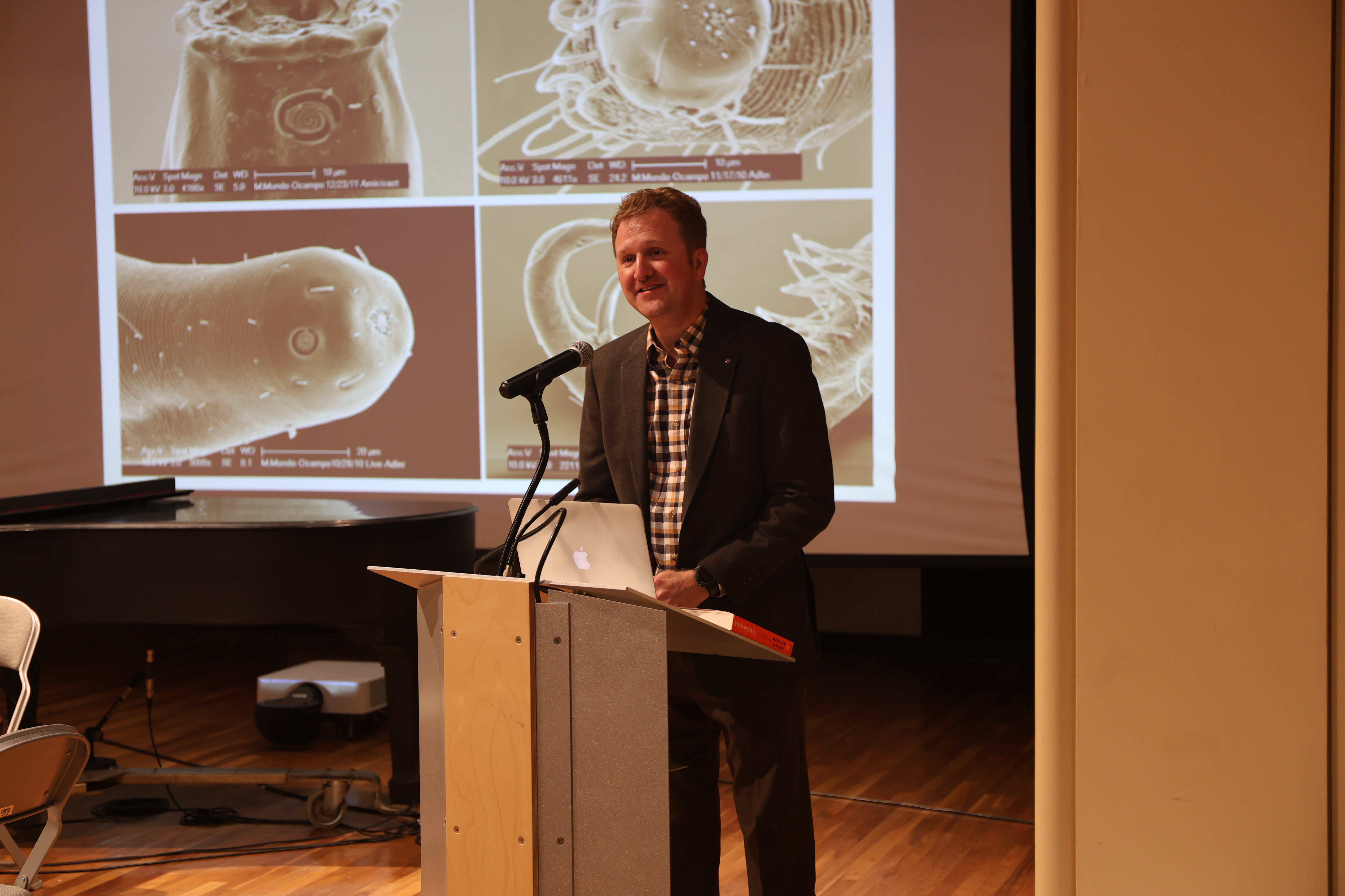 Presenters included College of Natural and Agricultural Sciences Dean Peter Atkinson and Adler Dillman, chair of UCR’s Department of Nematology, who displayed images of various nematode species.