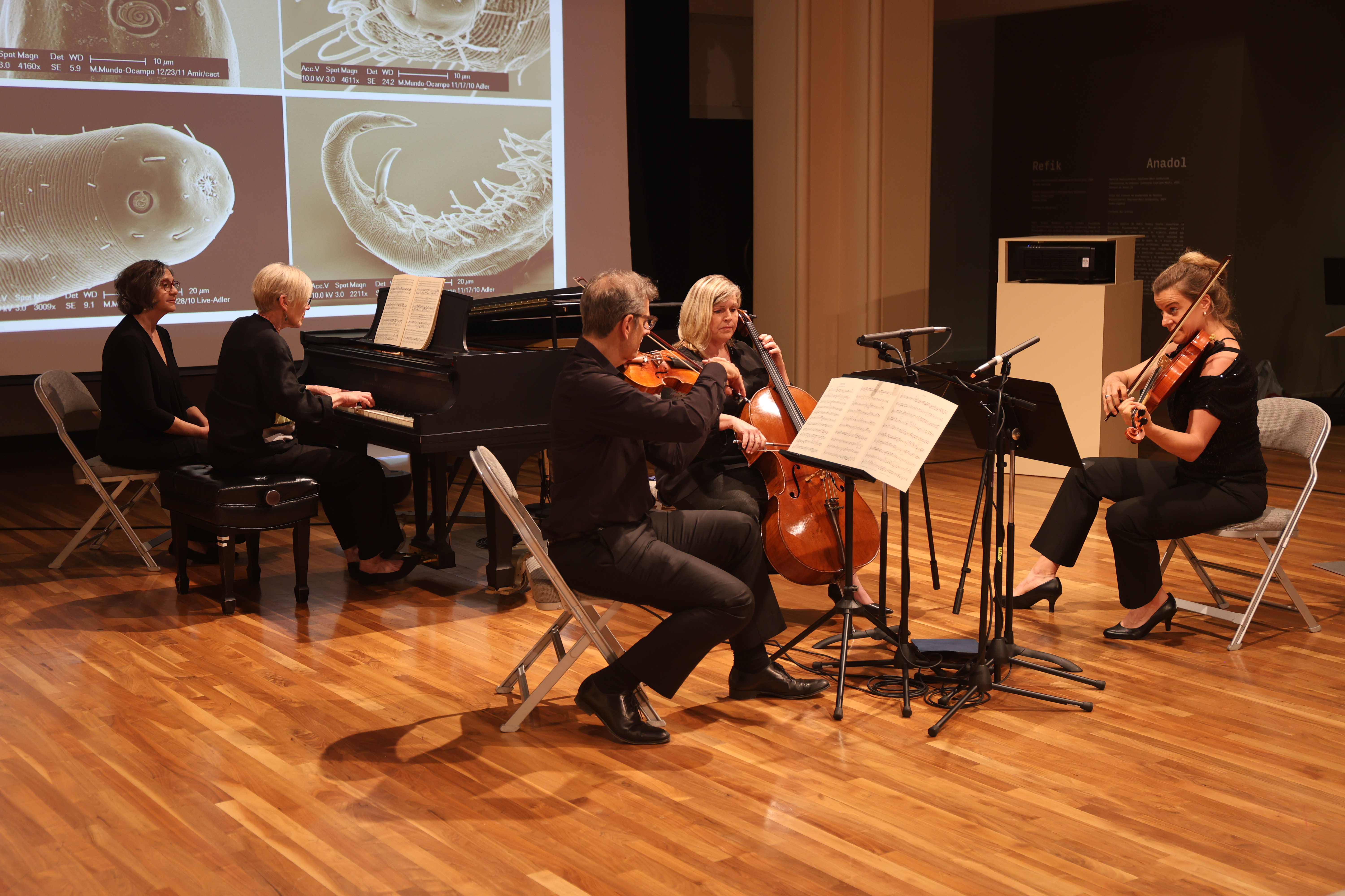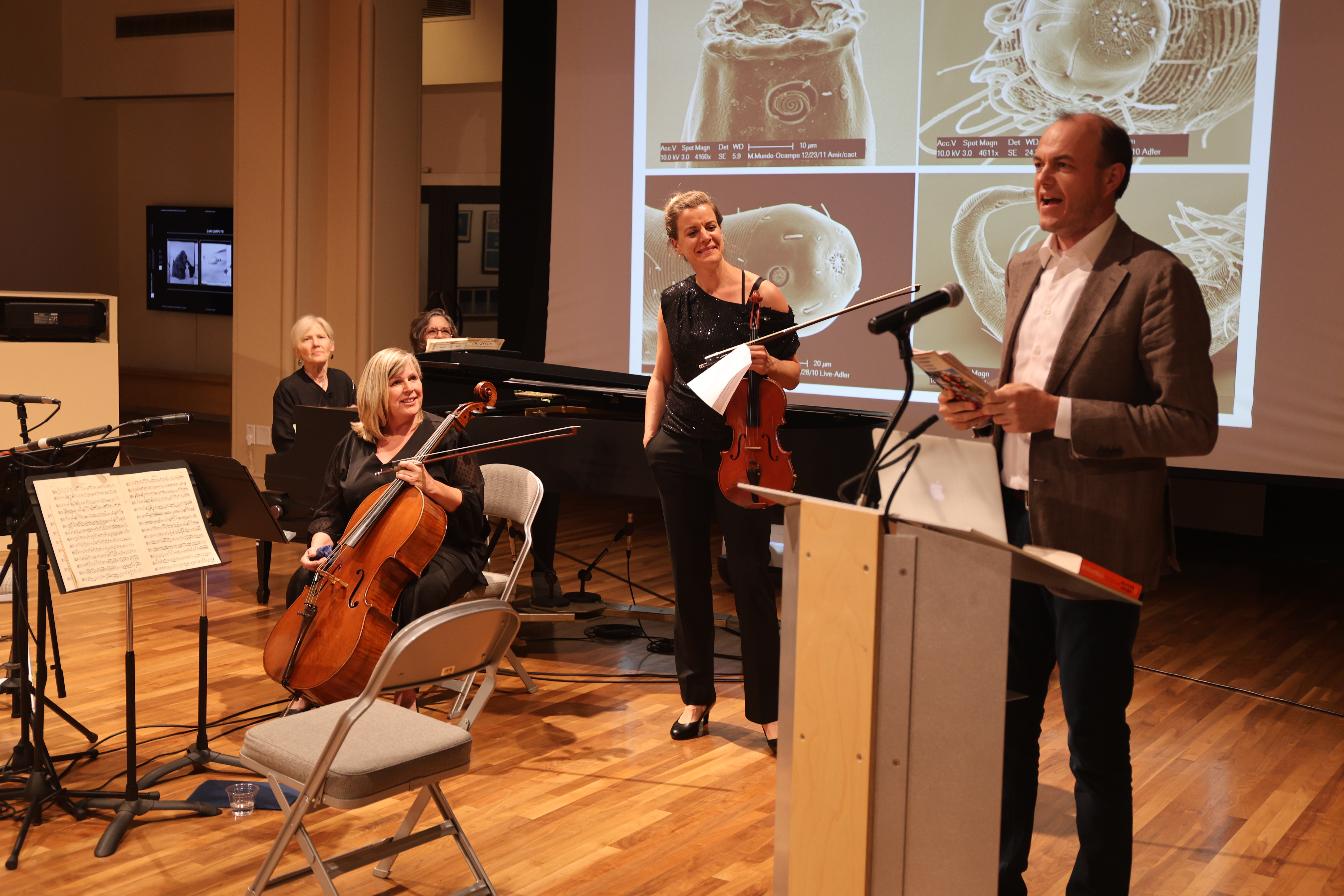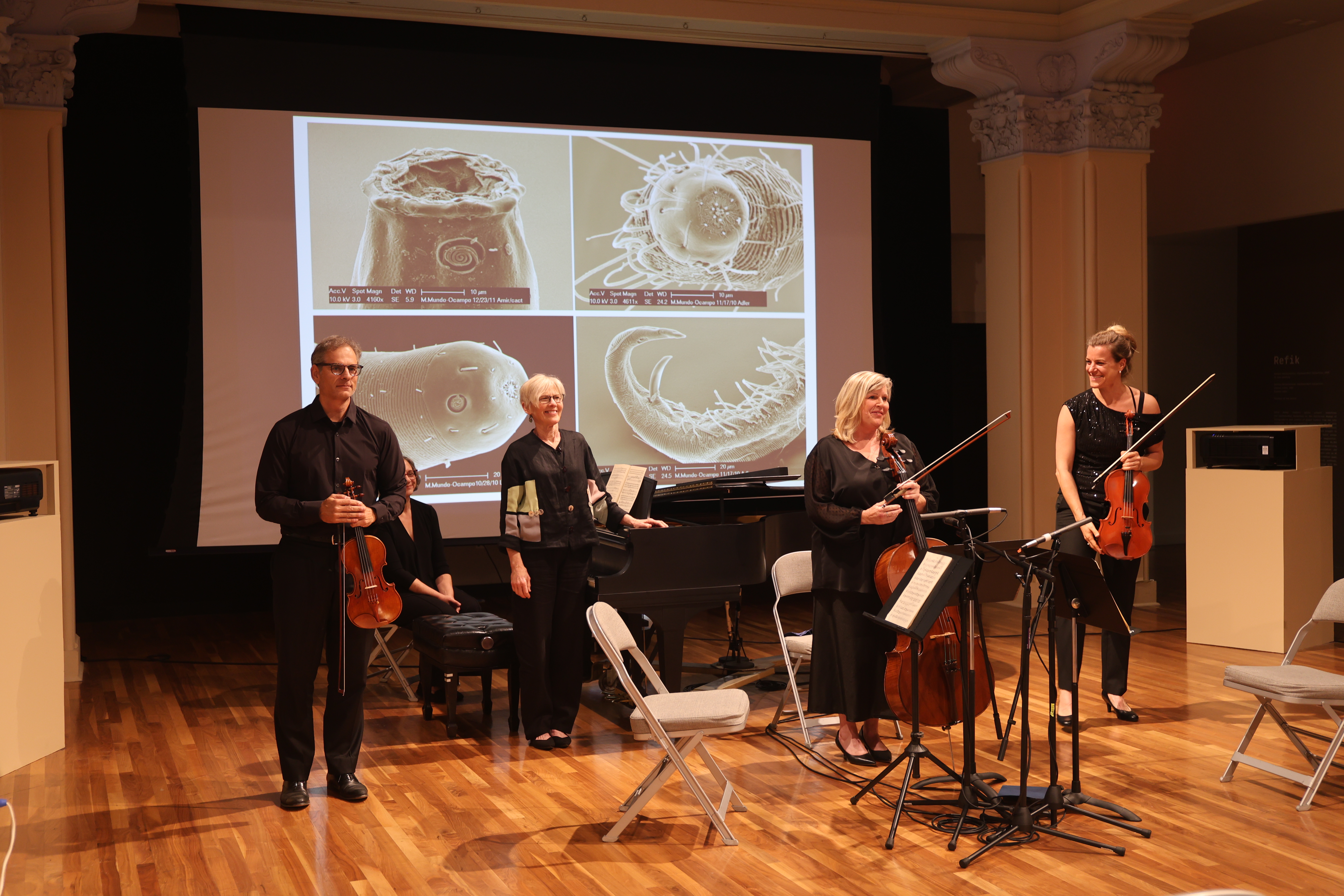 Scientists and musicians came together to talk about microscopic worms and perform chamber music at UC Riverside’s Culver Center of the Arts on Friday, Sept. 27.