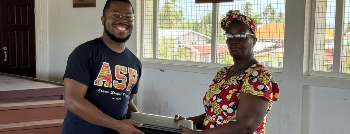 The effort was initiated during ASP’s 2023 trip to the country’s capital city, Georgetown. A conversation during an Emancipation Day celebration between Myrick and a local leader revealed that it often takes over a year to get the technology needed to start community computer labs. During that discussion, Myrick committed to a couple of laptops to jumpstart the initiative.