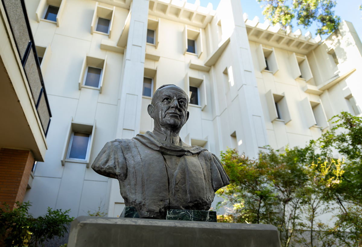 The Office of Planning, Development and Construction found the location to place the sculpture. Facilities Services then fabricated and installed a concrete base to mount the bust.