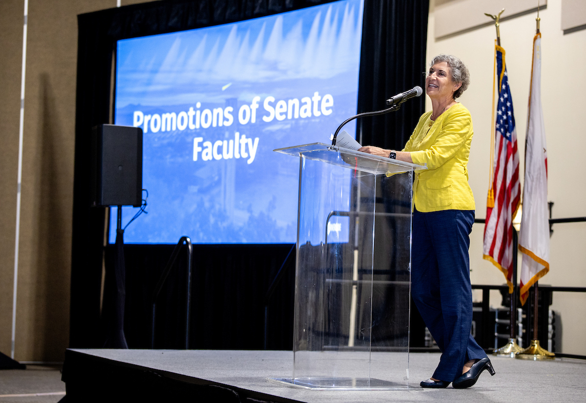 Elizabeth Watkins, UCR’s provost and executive vice chancellor, congratulated faculty members on their advancements. As provost, she reviews all merit and promotion files.