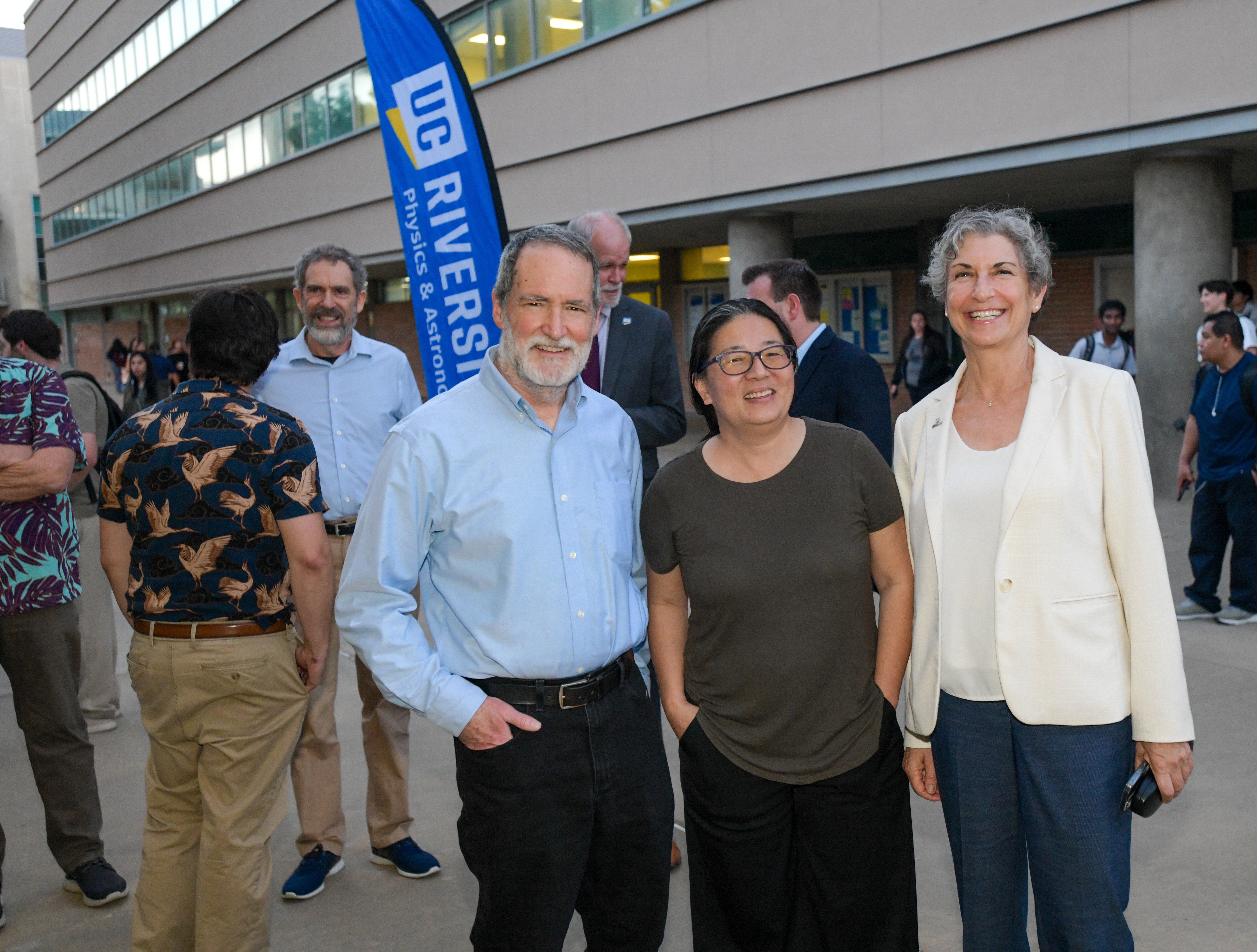 The meeting opened on February 26 with a public lecture by Brad Marston, a professor of physics at Brown University and president of the American Physical Society — the world’s largest professional organization for physicists — to a standing-room-only audience. Opening remarks were delivered by UCR Provost Elizabeth Watkins; Peter Atkinson, dean of the College of Natural and Agricultural Sciences; and Nobel Laureate Barry Barish. Barish, a distinguished professor of physics and astronomy at UCR, also serves as CECI’s director.